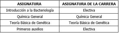 💡 Si ingresas a Bacteriología de la Javeriana, las asignaturas del Preuniversitario que hayas aprobado harán parte de tu plan de estudios según la siguiente tabla.
